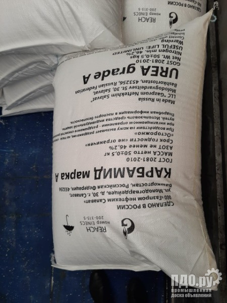 Отгружаем авто/жд транспортом со склада переработанный (дробленный) и отсеянный от мусора и примесей через сито, массовая доля азота – 46, 2 %, фасовка в биг-беги. Так же можем отгрузить с завода производителя кусковой карбамид не переработанный по желанию клиента. Имеется готовая селитра аммиачная переработанная, фасовка в биг-бегах отгружаем в полувагонах до жд/станции покупателя или авто доставка.
